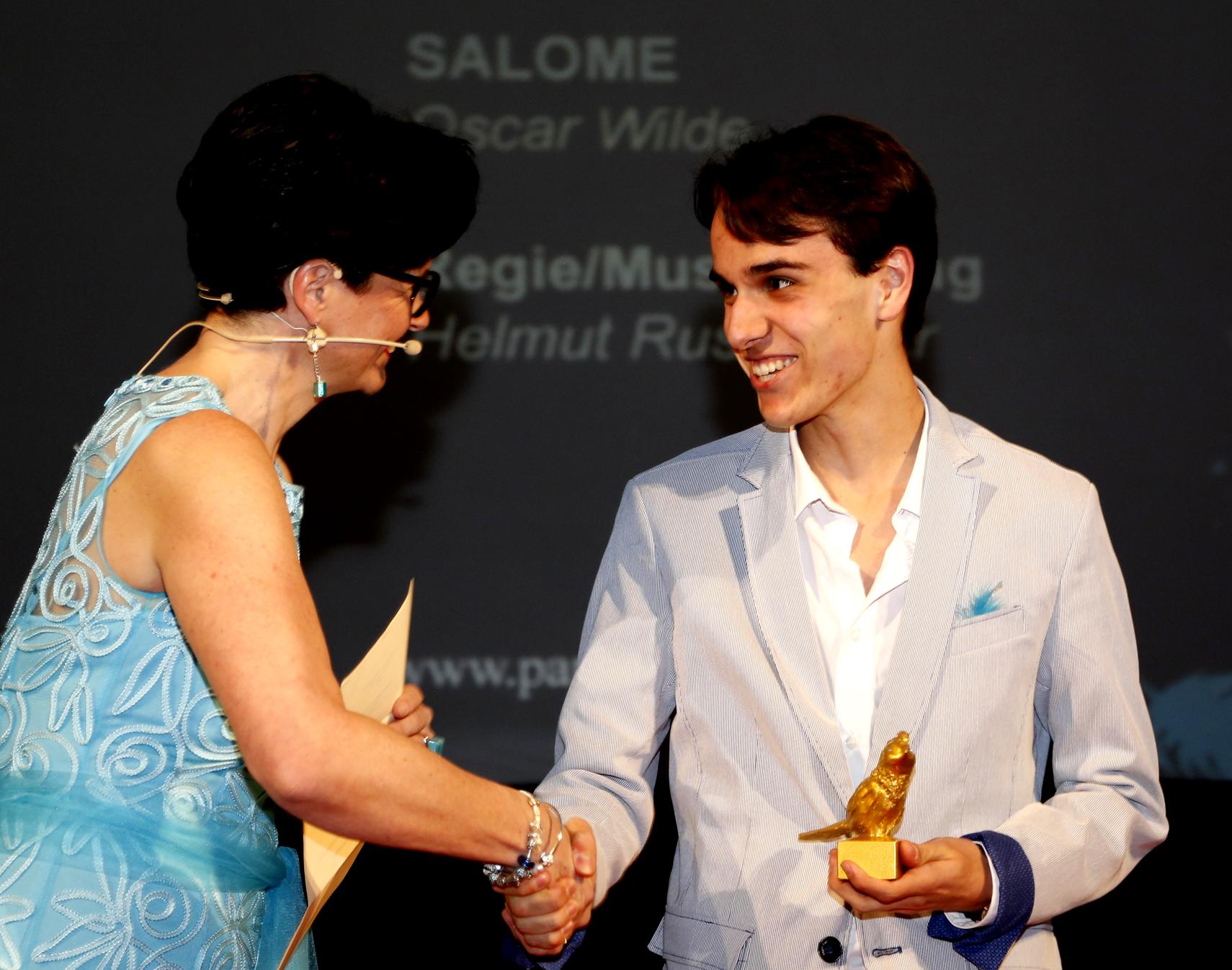 Unter den Ehrengästen befanden sich u.a. Herr Gemeinderat Sebastian Lankes in Vertretung des Bürgermeisters der Stadt Salzburg Dr. Heinz Schaden, Vertreter des Förderkreises, Kuratoriums und zahlreiche Mitglieder des Akademie Rats. Den künstlerischen Ehrenschutz übernahm Schauspieler und Theaterpädagoge Eugen Victor. Veronika Hammer begeisterte mit ihren künstlerischen Darbietungen als Musical-Sängerin. Elisabeth Hammer und Belinda Reiman moderierten die Preisverleihung. Von den zahlreichen Einsendungen waren 48 hochklassige Theaterproduktionen nominiert, aus denen die Preisträger Goldener Vogel und Goldener Papageno ermittelt wurden.